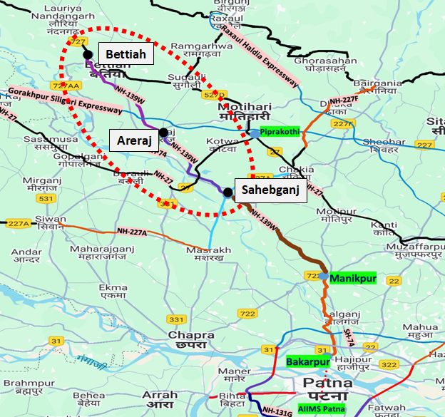 The proposed four-lane greenfield project aims to improve connectivity between the State Capital Patna with Bettiah connecting the North Bihar Districts of Vaishali, Saran, Siwan, Gopalganj, Muzaffarpur, East Champaran and West Champaran up to the areas along the Indo-Nepal border.
