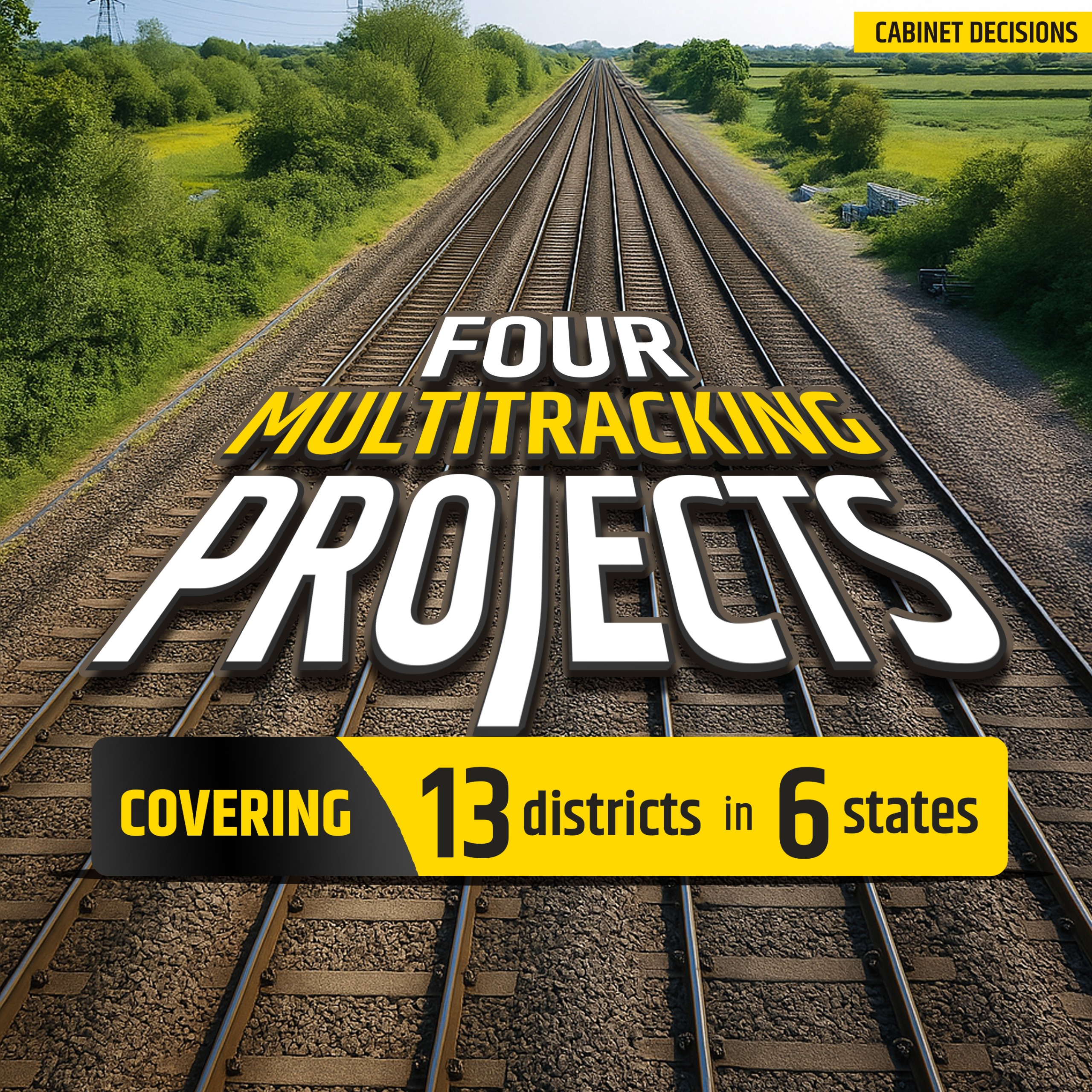 The newly-approved projects are Itarsi-Nagpur fourth line, Aluabari Road-New Jalpaiguri third and fourth line, Chhatrapati Sambhajinagar-Parbhani doubling line and Dangoaposi-Jaroli third and fourth line.